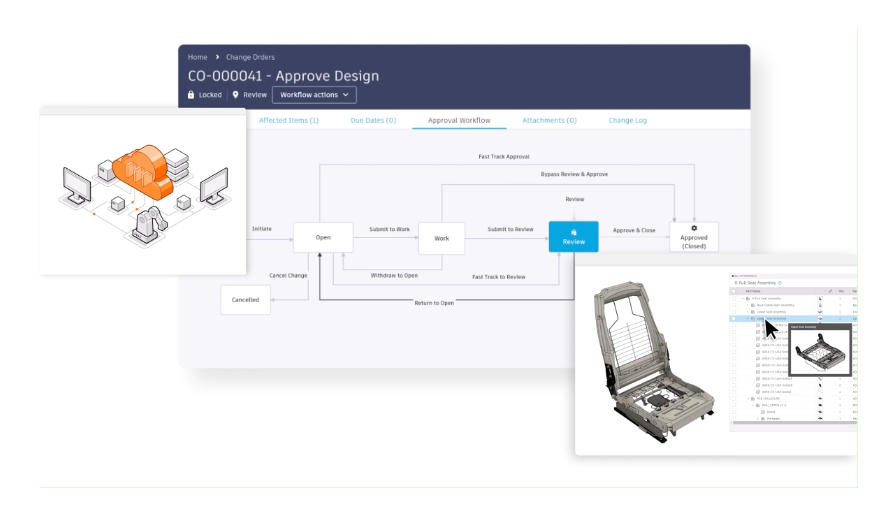 执行变更单、版本管理、自动化零件编号和 BOM 表管理。